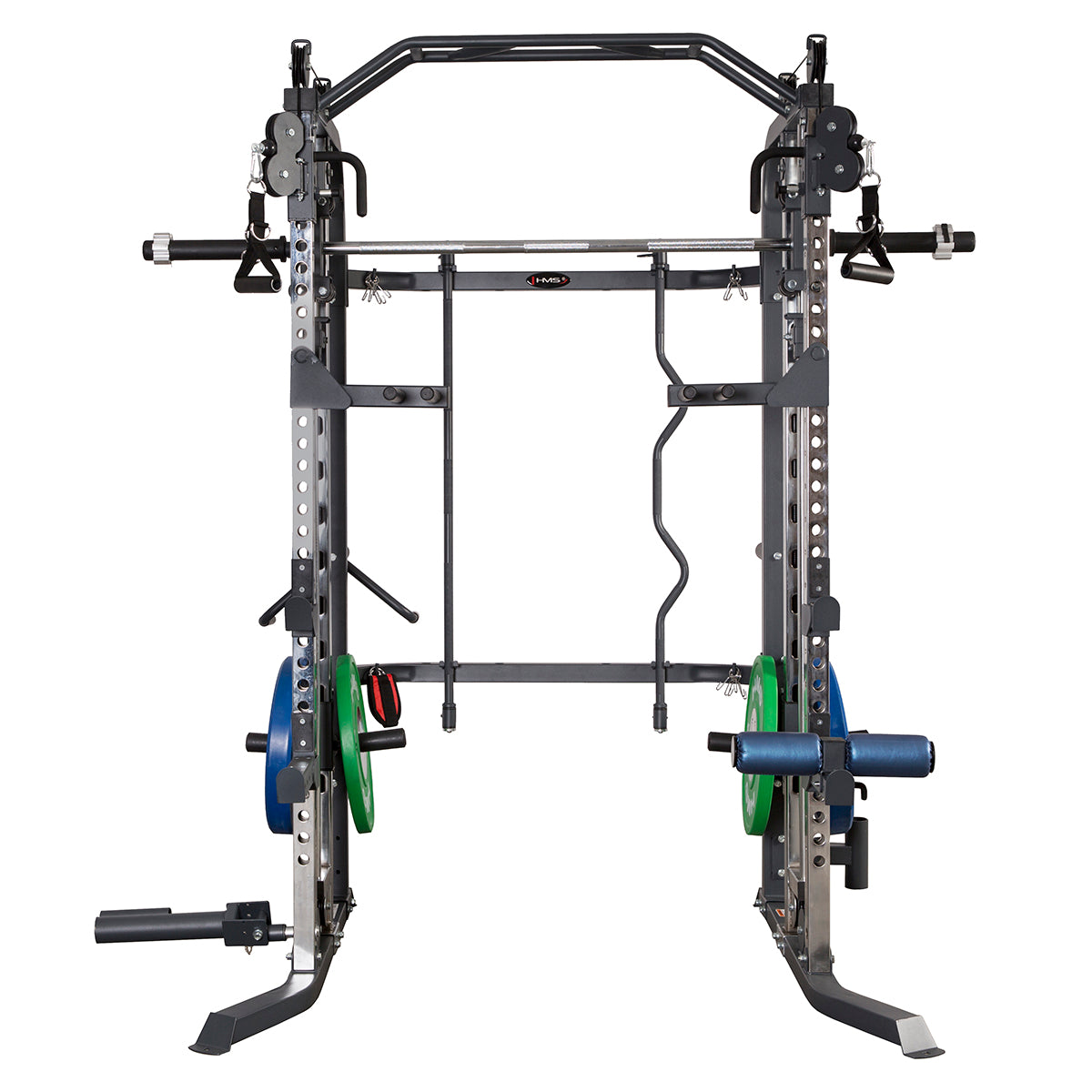 Die CYKLOP 1 Multipresse gewährleistet die Übungsvielfalt für alle Muskelgruppen. Langhantel, Zugstange, zwei Latzugmodule mit Höhenverstellung garantieren, für ihre Muskeln neue Reize zu setzen. Sie können dadurch ihre Muskeln und Muskelköpfe im vollen Umfang aufbauen. Jede mit der Multipresse ausgeführte Bewegung verbindet sich mit einem gesundheitsorientierten Training. Die Multipresse verfügt auch über Hantelablage und einen speziellen Griff für freie Langhantel. Dadurch ist es möglich, ein Training mit freien Gewichten durchzuführen. Die Bank gibt Ihnen viele zusätzliche Möglichkeiten, das Training mit der Multipresse interessanter zu machen.