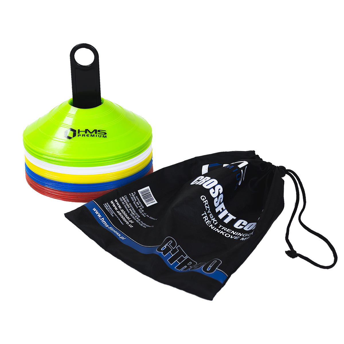 Das GTR50 HMS PREMIUM Set ist ein buntes Set aus 50 Markierungshauben und mit einem Trageständer. Dieses multifunktionale Set eignet sich für jedes Spiel und für viele Sportdisziplinen. Es ist ideal sowohl für Trainer der Teamspiele als auch für Trainer der Leichtathletik. Die Markierungshauben dienen zur Abgrenzung von Spielfeldern und zur Erfüllung der Trainingsziele, wie z.B. bei Slalomparcours. Ein zusätzlicher Vorteil betrifft den Trageständer, mit dem Sie problemlos alle Markierungshauben transportieren. Nach dem Training können Sie alles in einen handlichen Beutel packen, der ebenfalls zum Set gehört.