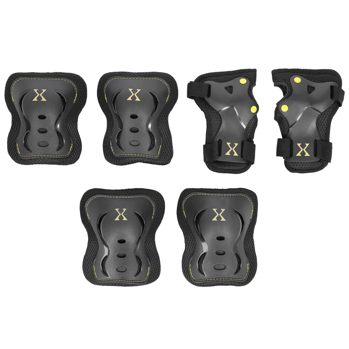 Das Set umfasst: Handgelenk-, Ellenbogen- und Knieschützer pro 2 Stk.