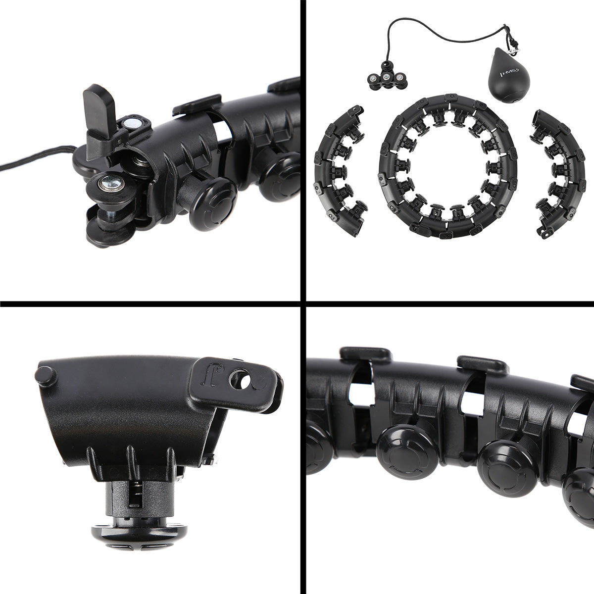 HHW01 SCHWARZ HULA-HOOP-REIFEN MIT MASSAGEPUNKTEN UND SCHWERKRAFTBALL HMS