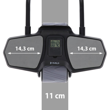Das Rad ist mit einem leicht ablesbaren Timer ausgestattet, der nicht nur die verstrichene Zeit anzeigt, sondern auch die Möglichkeit bietet, auf Null herunterzuzählen, um die Dauer der Übung genau zu verfolgen. Dieses minimalistische, funktionelle Element verbessert die Möglichkeit, das Training zu überwachen und zu verwalten. Der Roller verfügt außerdem über eine praktische Handyhalterung, die es ermöglicht, Fitness-Apps zu nutzen oder Multimediadateien zu sehen, was jede Trainingseinheit noch interessanter und effektiver macht.
