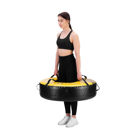 Der Reifen wurde aus robusten Materialien gefertigt, daher ist er solide und gleichzeitig so weich auf der Außenseite, dass die trainierende Person vor eventuellen, durch Pralle verursachten Verletzungen geschützt wird. Das äußere Material bildet widerstandsfähiges PVC, das Ihnen während einiger Übungen Unterstützung gewährleistet. Gleichzeitig ist das Produkt abriebfest und lässt sich sauber halten.