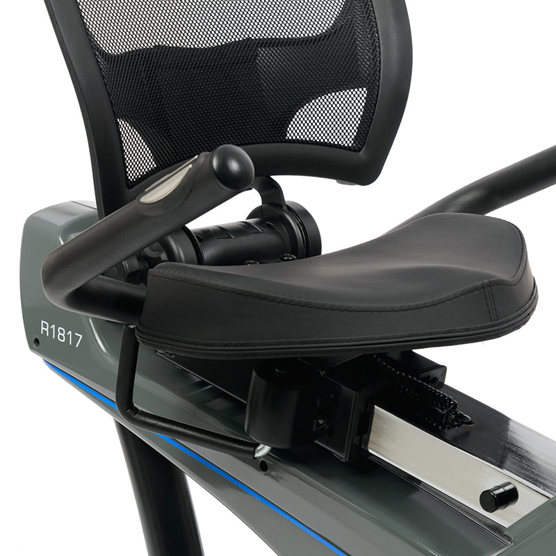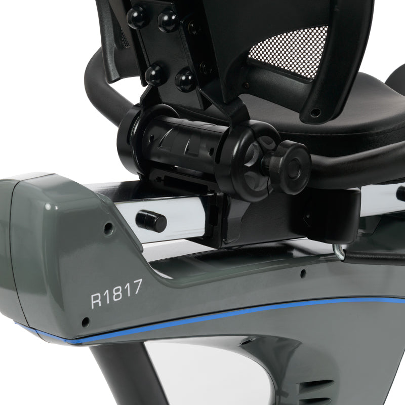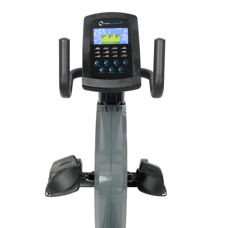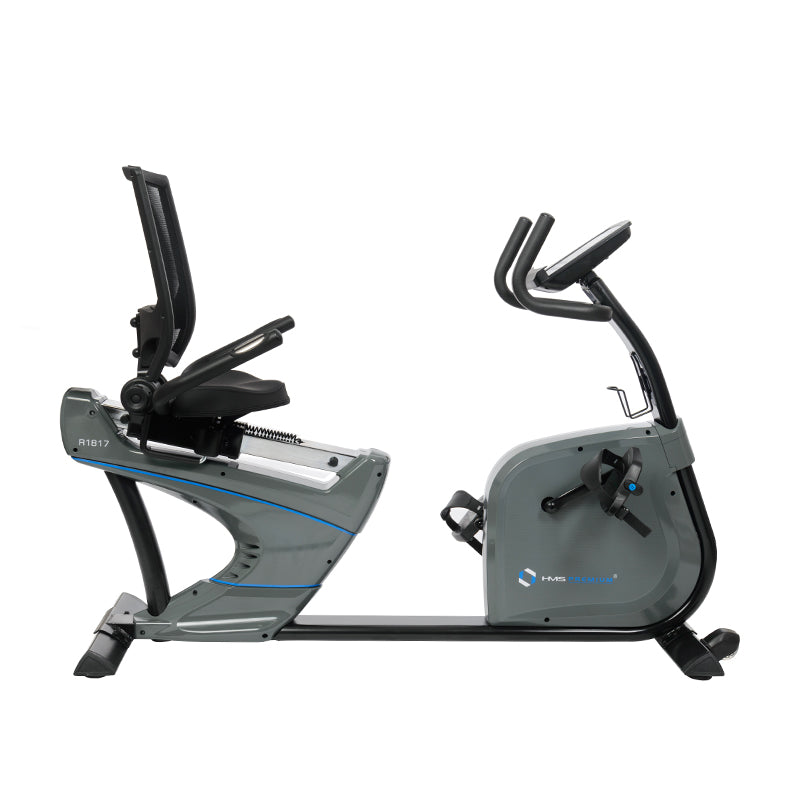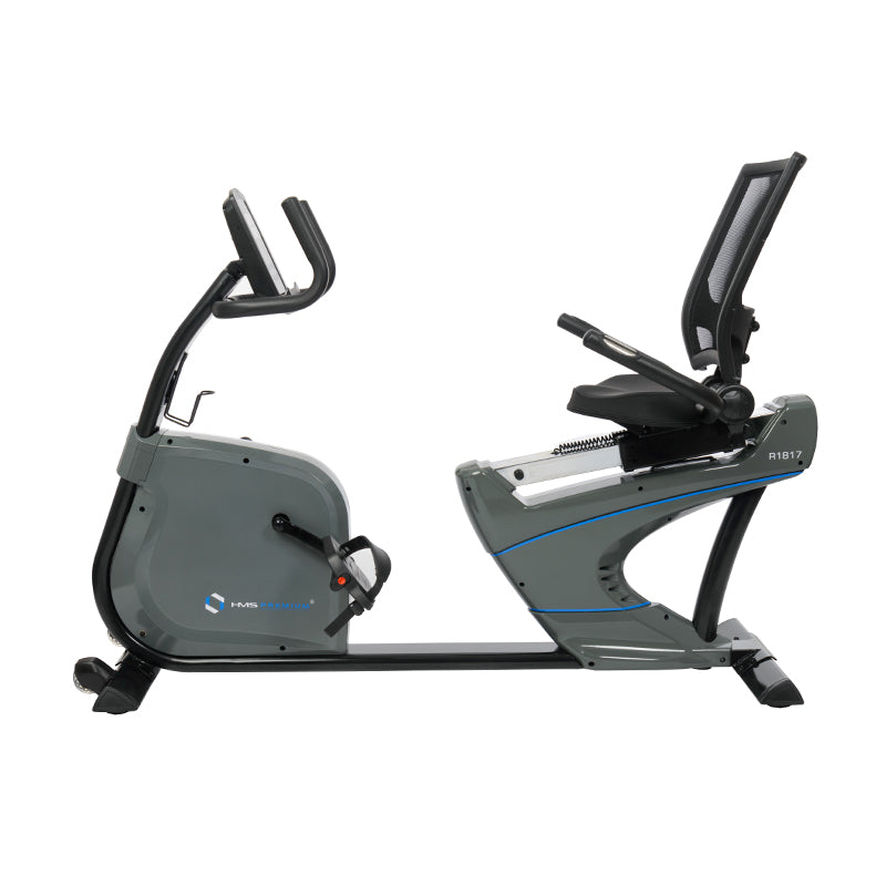 Der R1817 HMS Liegeheimtrainer ist ein hochwertiger Liegeheimtrainer der Semi-Commercial-Klasse. Solche Norme bedeutet, dass dieses Gerät für kleine Fitnessclubs, SPA-Salons sowie Wellnesszentren geeignet ist. Der Liegeheimtrainer ist mit einem Sattel ausgestattet, der eine stufenlose Einstellung im Bereich von 28 cm ermöglicht. Ein Nutzer kann die Rückenlehne auch frei einstellen. Der praktische und moderne Computer zeigt alle wichtigsten Trainingsparameter an. Ein Nutzer kann auch den Neigungswinkel an seine individuellen Bedürfnisse anpassen. Dem Nutzer stehen 7 Hauptfunktionen zur Verfügung, das sind: Time (Trainingszeit), Distance (die zurückgelegte Strecke), Calories (verbrannte Kalorien), Pulse (Puls), Watt (Leistung), Speed (Geschwinidgkeit) und RPM (Umdrehungen pro Minute). Der R1817 HMS Liegeheimtrainer bietet Ihnen auch 12 Grundtrainingsprogramme (inkl. 19 Programme). Ein Nutzer hat die Möglichkeit, die folgenden Funktionen zu nutzen: H.R.C, Body Fat (Messung des verbrannten Körperfetts), Recovery (Pulsmessung). Es gibt auch die Funktion, ein eigenes Benutzerprofil zu erstellen! Mit dem magnetischen Widerstandssystem ist Ihr Training leise und gleichzeitig stört es niemanden in Ihrer Umgebung. Die elektronische Lastverstellung ermöglicht es Ihnen, die Einstellungen zu ändern, ohne das Training abzubrechen. Das Gerät verfügt über die rutschfesten Pedale, die mit den speziellen Riemen zur Stabilisierung der Füße ausgestattet sind. Mit dem Ziel, maximale Sicherheit zu gewährleisten, sind alle Griffe mit einem speziellen rutschfesten Stoff bedeckt.