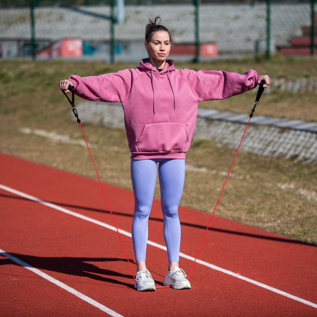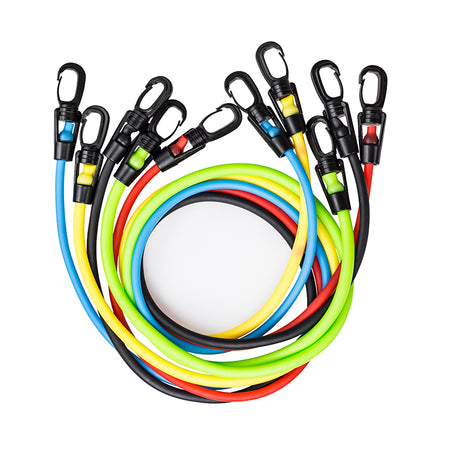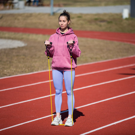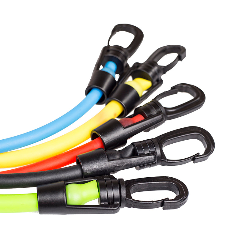 Die Trainingsbänder nutzen Ihr Körpergewicht, um Ihre Fitness und Kraft zu verbessern. Hohe Qualität, durchdachte Konstruktion und Robustheit gewährleisten eine erfolgreiche Durchführung der Trainings unter allen Bedingungen. Das Set enthält 5 Widerstandsbänder, zwei Handgriffe, zwei Knöchelgürtel und eine Türbefestigung.