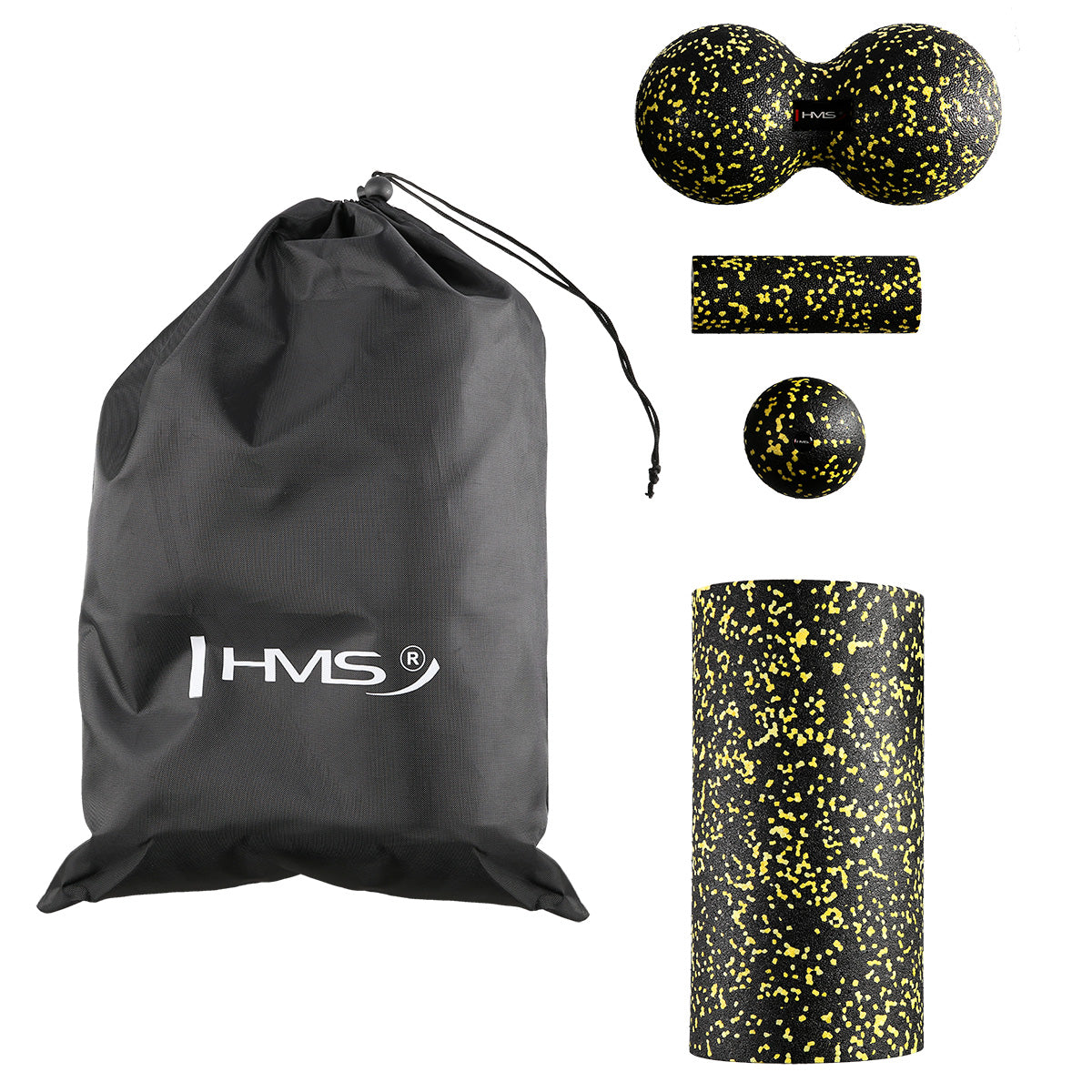 Das Set zur Massage HMS ist perfekt für die Selbstmassage und enthält alles, was Ihren Körper gesund hält. Der kleine Ball mit einem Durchmesser von 8 cm ist genau das Richtige für die Massage von Triggerpunkten und Bereichen der Faszienspannung. Der Doppelball der Marke HMS eignet sich perfekt für die Therapie tiefliegender Muskelgruppen oder schwer erreichbarer Körperregionen wie Nacken, Gesäß, Schultern und Brust. Mit der Minirolle können Sie Ihre Unterarme oder Füße entspannen. Die große Rolle ist das einfachste Gerät, um Verpannungen auf einer großen Oberfläche abzubauen.