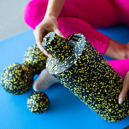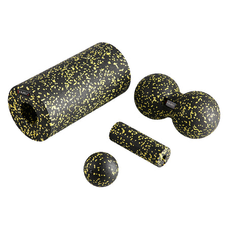 FSBM04 SCHWARZ-GELB MASSAGE-SET FITNESSROLLE / MASSAGEBÄLLE (4 Stk.) HMS