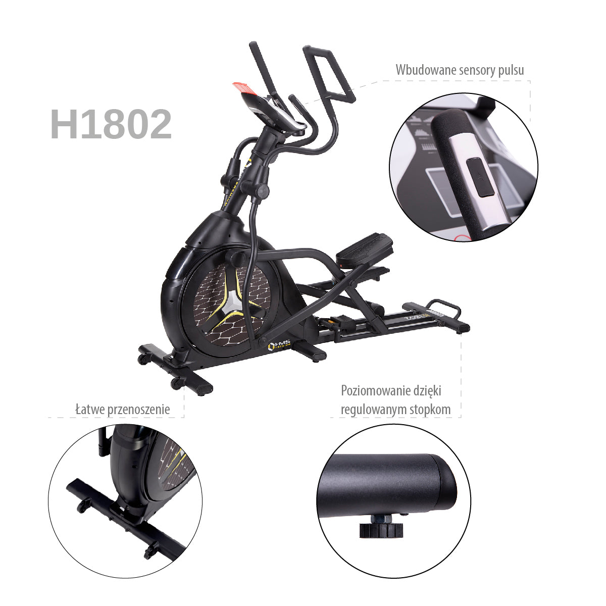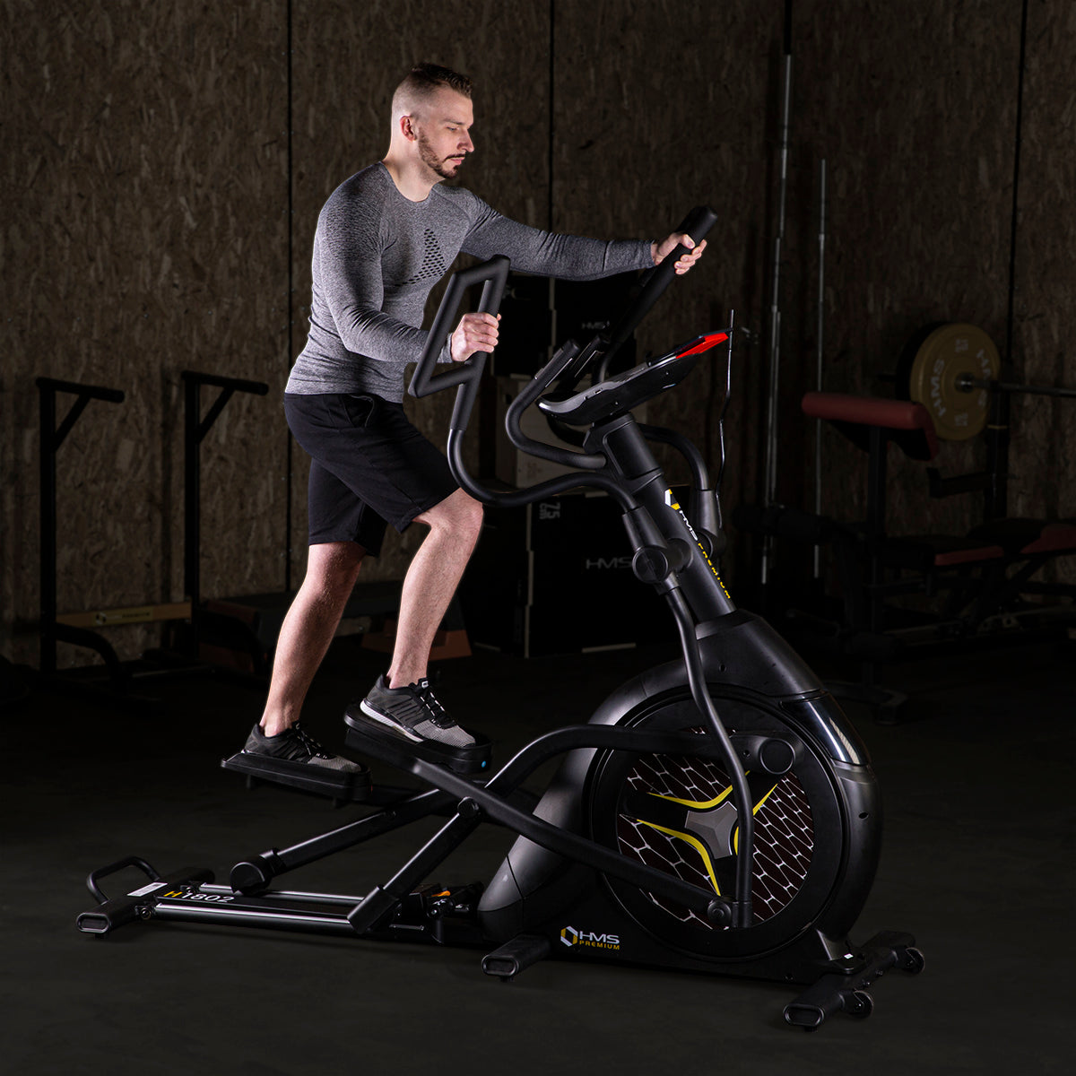 H1802 HMS PREMIUM ist ein langlebiger Crosstrainer der Klasse SEMI COMMERCIAL, d. h. er ist nicht nur für Heimtrainings, sondern auch für den Gebrauch in kleinen Fitnessclubs bestimmt. Dieses Sportgerät verfügt über ein großes Schwungrad und eine stabile Konstruktion. Die besten, zur Herstellung verwendeten Stoffe gewährleisten lange und reibungslose Benutzung. Mit dem elektromagnetischen Widerstandssystem sind Ihre Übungen leise. Das ist eine Verbindung zwischen der hohen Funktionalität und der Benutzungsfreundlichkeit.