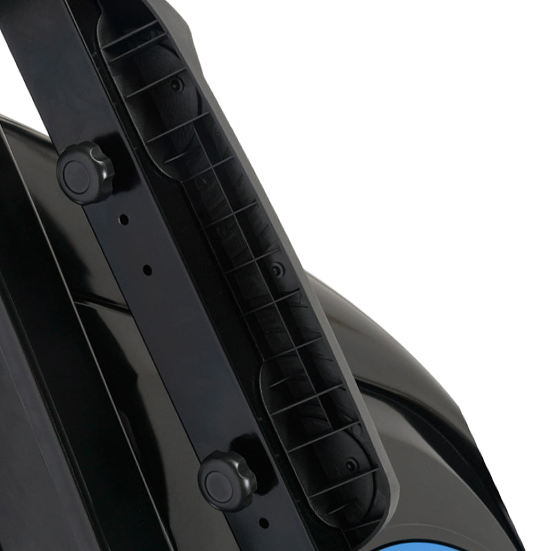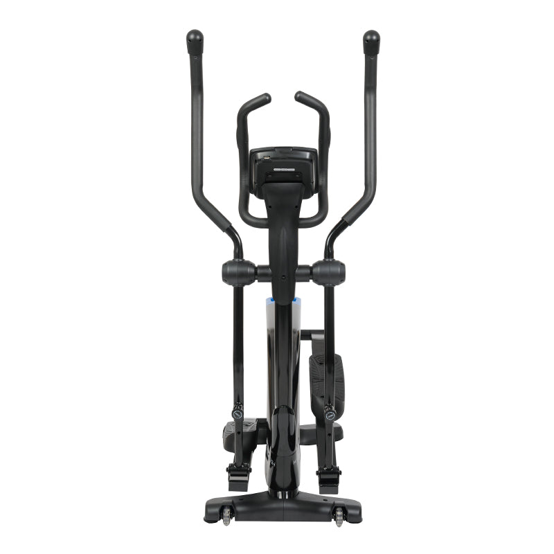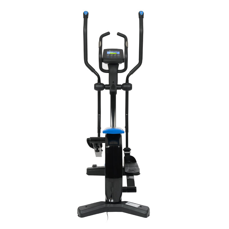 Das Gerät verfügt über die breiten (12 cm) und rutschfesten Pedale sowie die vertikale und horizontale Satteleinstellung. Mit dem Ziel, maximale Sicherheit zu gewährleisten, sind alle Handläufe mit einem speziellen rutschfesten Stoff bedeckt. Der Crosstrainer ist auch mit Bluetooth-Technologie, Handpuls-Sensoren zur präzisen Pulsmessung und einem USB-Anschluss ausgestattet.