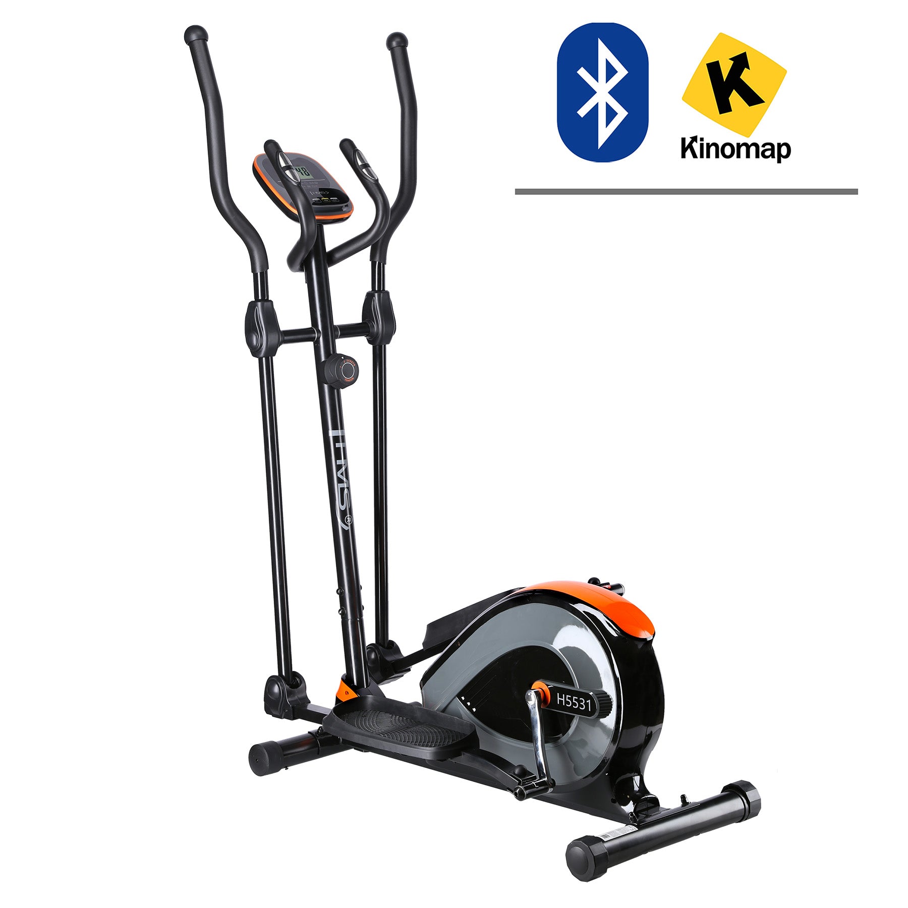 Der Crosstrainer H5531i ist mit der Kinomap-App kompatibel, mit der Sie ein interaktives und motivierendes Training genießen können. Die Kinomap-App bietet Ihnen Zugang zu Tausenden von Routen aus der ganzen Welt, die Sie auf dem Bildschirm Ihres Geräts anzeigen können. Die App ist für Android und iOS sowie für Smart-TVs und Computer verfügbar.