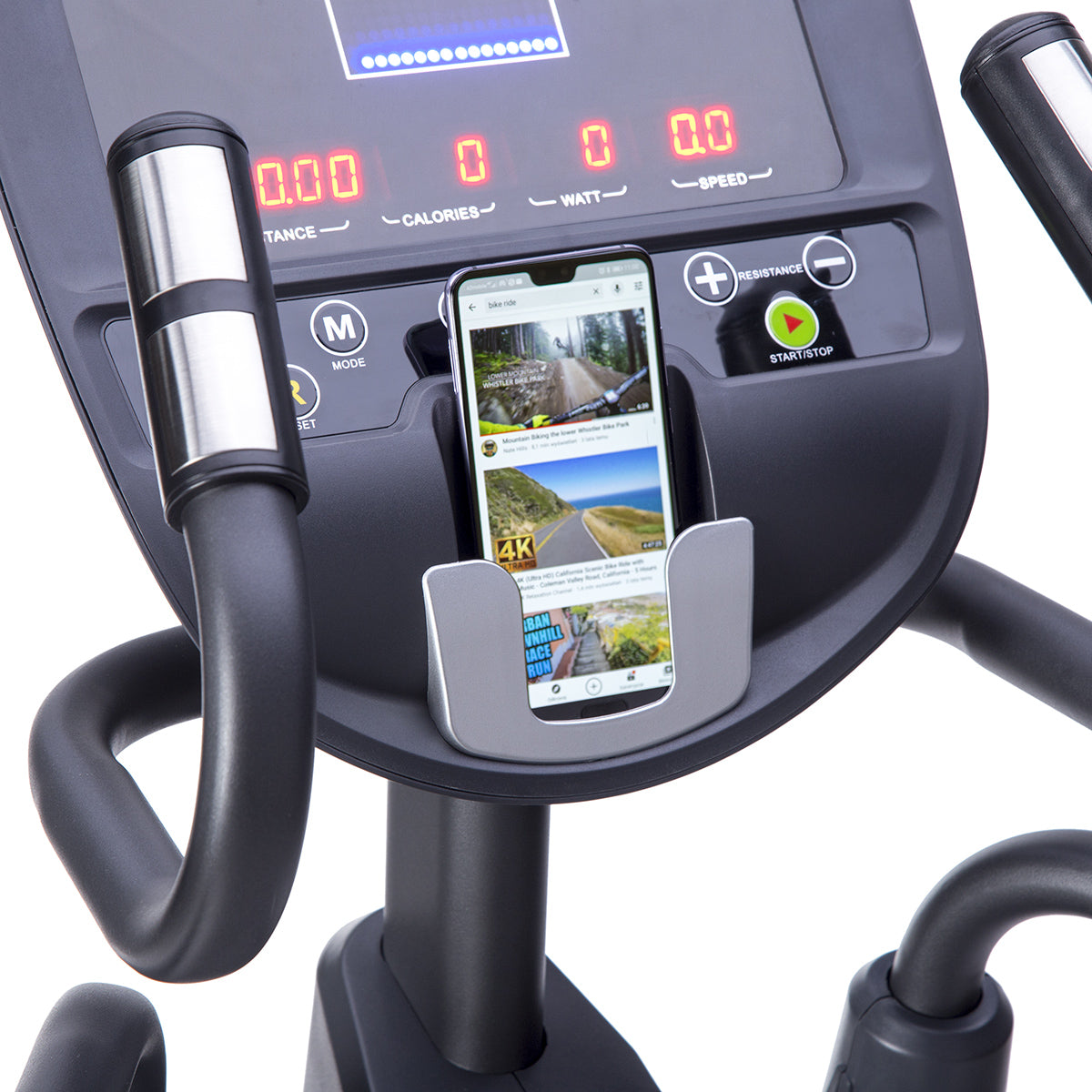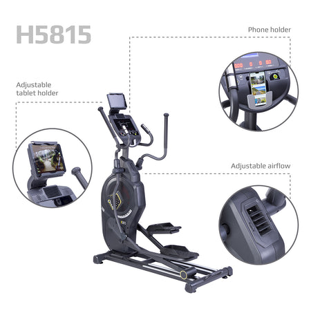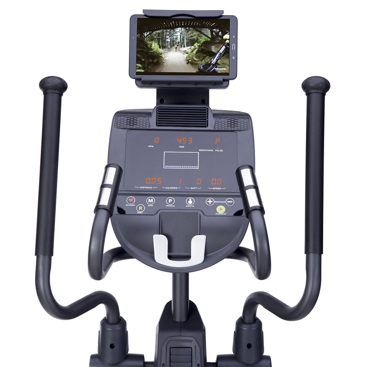 Der Crosstrainer hat einen modernen Computer mit dem LCD-Bildschirm. Die Benutzung des Computers ist sehr intuitiv und einfach. H5815 hat insgesamt 22 integrierte Programme. Jeder Nutzer, unabhängig von seiner Leistungsfähigkeit, findet ein richtiges Programm für sich. Der Computer zählt und zeigt alle wichtigen Trainingsparameter an. Außerdem ist der Crosstrainer mit einer Halterung für ein mobiles Gerät ausgestattet. Daher kann der Nutzer z. B. sein Tablet während des Trainings benutzen.