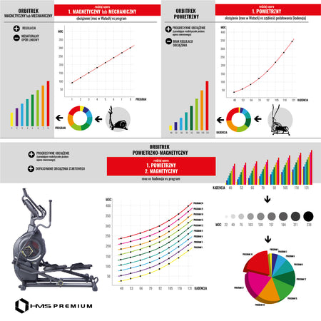 Der Crosstrainer H5815 HMS PREMIUM ist ein Gerät der Klasse SEMI COMMERCIAL, d. h. es ist sowohl für den Heimgebrauch und als auch für den Gebrauch in den kleinen Fitness-Clubs bestimmt. Sein größter Vorteil betrifft das Widerstandssystem. Dieser Crosstrainer verfügt über das Luft- und magnetische Widerstandssystem. Solche Lösung sorgt für einen reibungslosen Gebrauch, was im Falle gewöhnlicher Crosstrainer unmöglich ist. Außerdem erreichen Sie mit diesem Widerstandssystem endlose Möglichkeiten, das Gerät an Ihre Fitness anzupassen. Beim Luftwiderstand ist der Widerstand höher, wenn sie schneller die Bewegung ausführen. Der magnetische Widerstand ist hingegen ein klassisches Widerstandssystem.