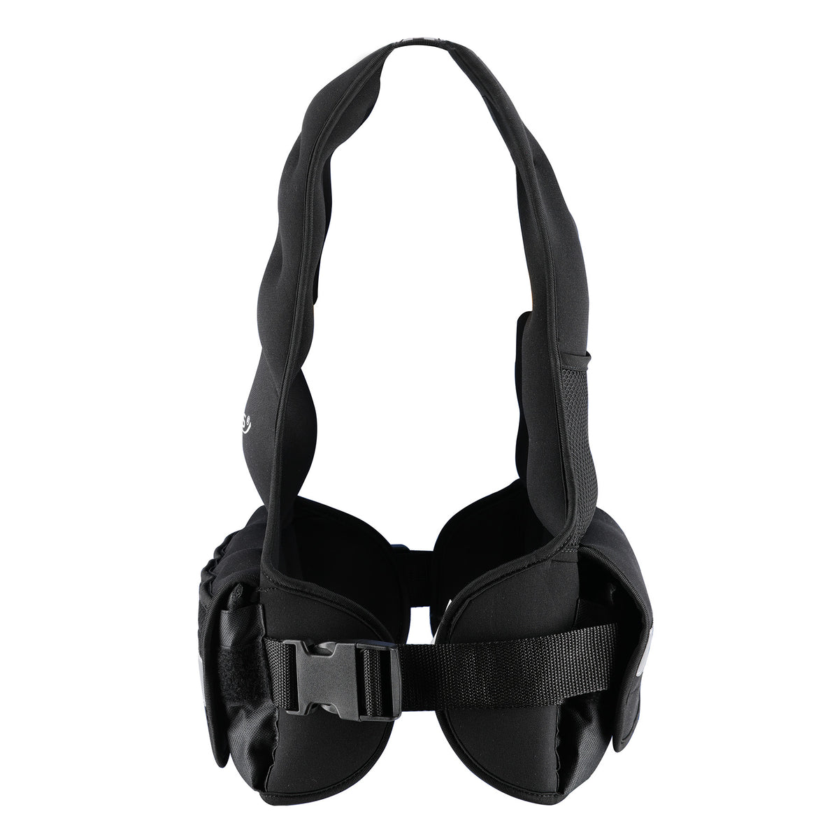Bei der Entwicklung der Weste stand der Tragekomfort im Vordergrund. Die verstellbaren Träger ermöglichen eine perfekte Passform für jede Figur, das spezielle Neoprenmaterial ist weich, schweißresistent und verhindert ein Verrutschen der Weste auch bei intensiven Bewegungen. Eine elastische Netztasche bietet Stauraum für Handy, Schlüssel oder Geldbeutel und macht das Training noch praktischer.