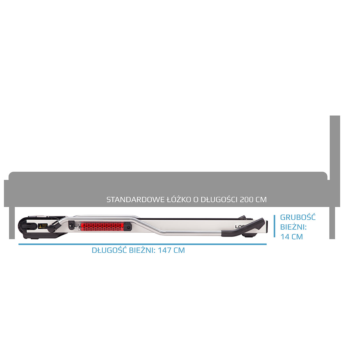 Das Laufband LOOP15 ist aus den hochwertigsten Stoffen hergestellt und zieht zusätzlich durch sein modernes Design an. Sein zweifelloser Vorteil sind seine Abmessungen. Nach dem Zusammenklappen der Stöcke ist das Produkt nur 14 cm hoch. Problemlos kann man es z. B. unter das Bett aufbewahren. Auch das Verschieben des Geräts ist kein Problem. Mit den Transporträdern werden Sie das Laufband ohne besonderen Aufwand an einem geeigneten Ort aufstellen.
