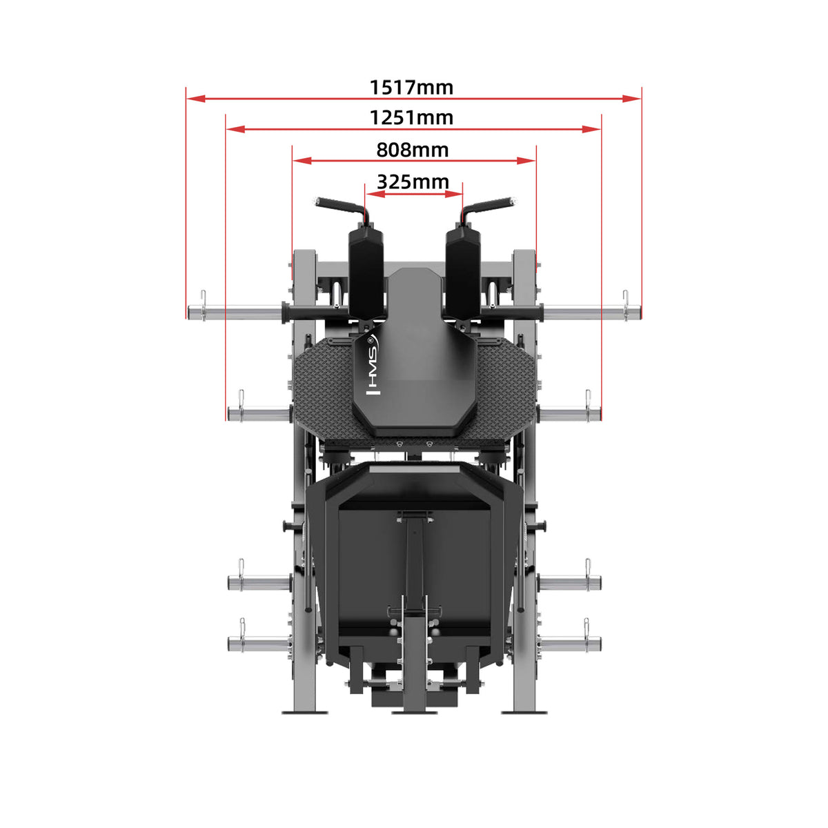 Die Beinpresse der Marke HMS ist ein Gerät für Beintraining, das mehr Kraft, Ausdauer und Sicherheit gewährleistet. LP3175 hat eine starke Konstruktion, die sogar die schwersten Gewichte standhalten kann. Wählen Sie zwei Konfigurationsmöglichkeiten dieses Produkts, die Kniebeugen und Beinpresse ermöglichen.