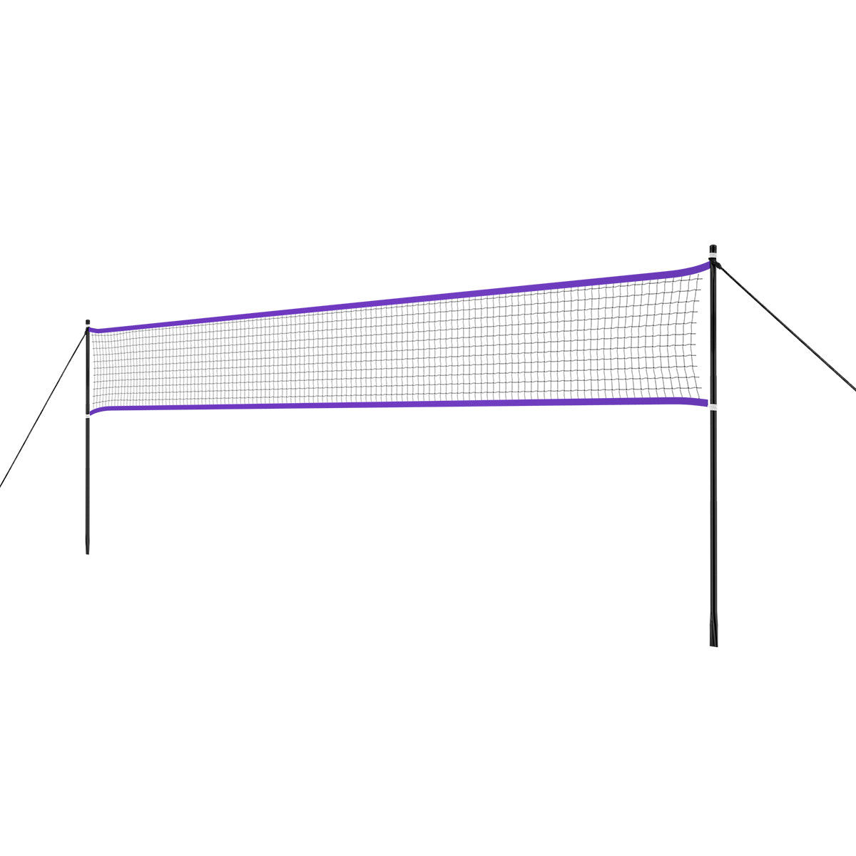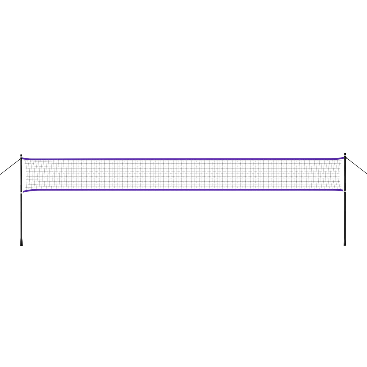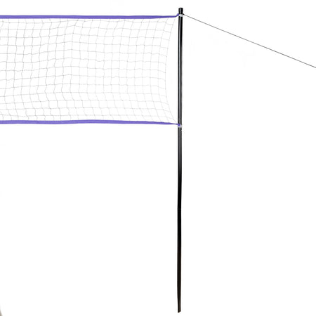 Bei der Montage des Produkts werden Stangen als Gestell in den Boden gesteckt, an denen sich das Netz befestigen lässt. Sowohl das Netz, als auch das Gestell sind wetterbeständig. Die Länge des Netzes beträgt über 6m, daher ermöglicht es, zwei Spiele gleichzeitig frei auszutragen.
