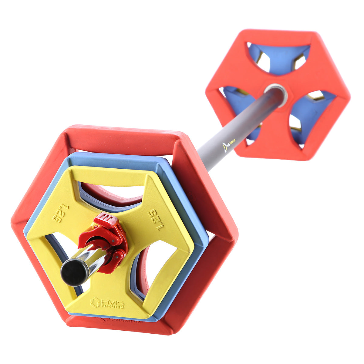 SBP21 HMS PREMIUM ist eine Langhantel für Fitness. Sie ist ein ideales Produkt bei einem Gruppen- sowie individuellen Training. Das Set besteht aus einer Langhantelstange, 3 Gewichtsscheiben-Paaren mit unterschiedlichen Gewichten und Hantelverschlüssen Lock Jaw.
