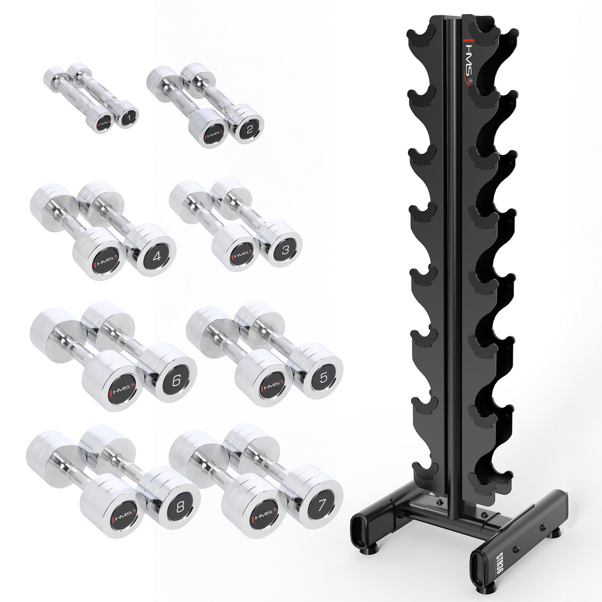 SET HANTELN CHD 2 X 1–8 KG (72 KG) + STÄNDER STR36 HMS