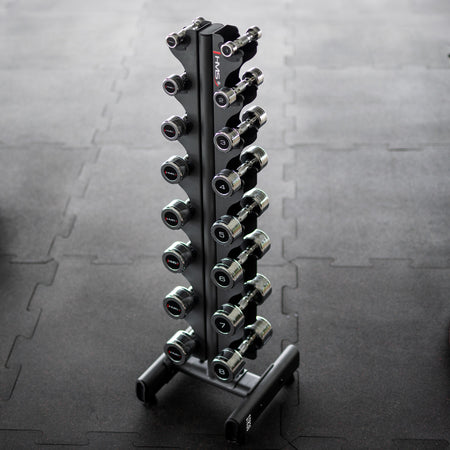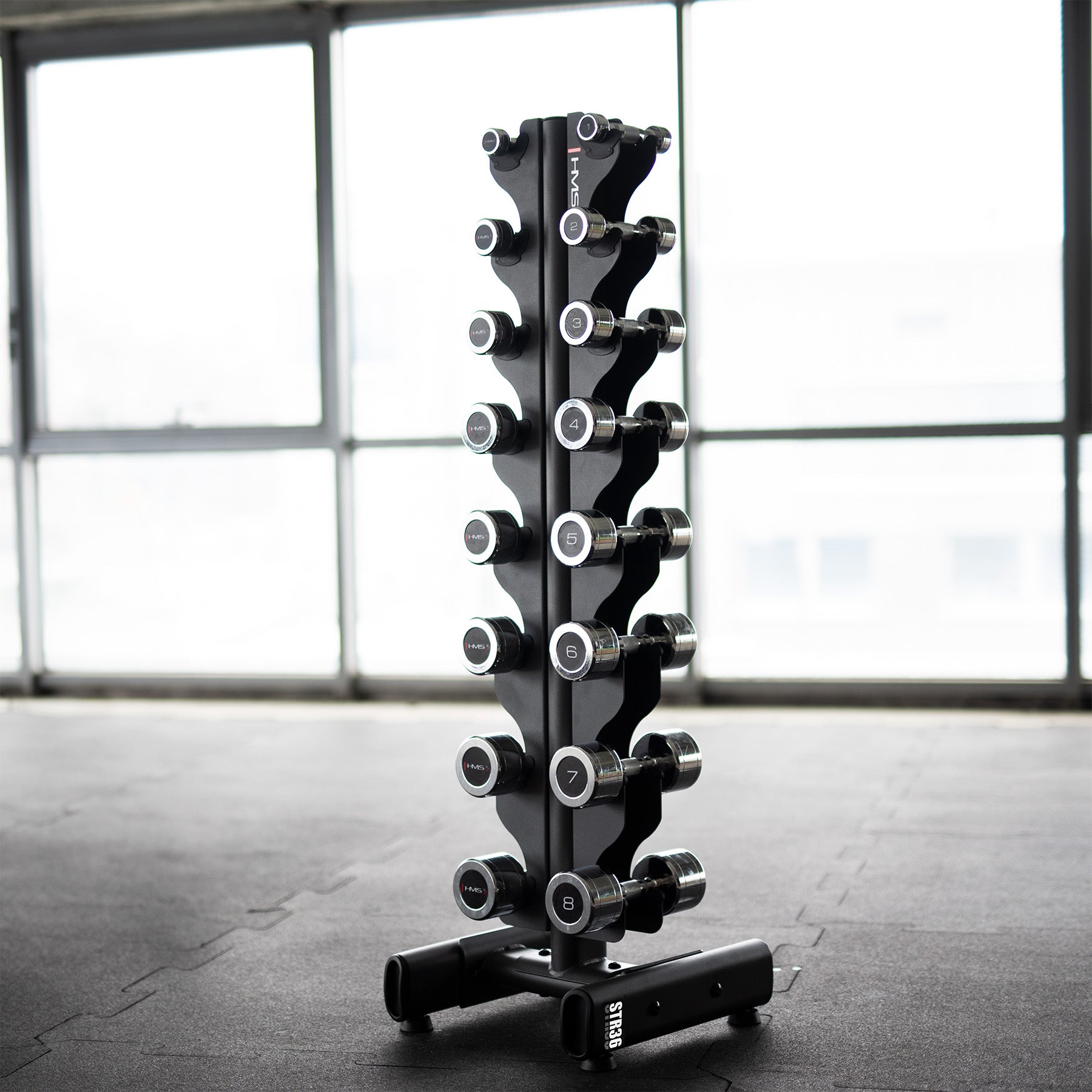 Das HMS-Set CHD-Hanteln in Kombination mit dem STR36-Ständer ist die perfekte Lösung für alle, die elegante, funktionale und kompakte Krafttrainingsgeräte suchen. Das Set enthält Hanteln von 1 bis 8 kg, die paarweise verkauft werden und perfekt zum vertikalen STR36-Ständer passen.