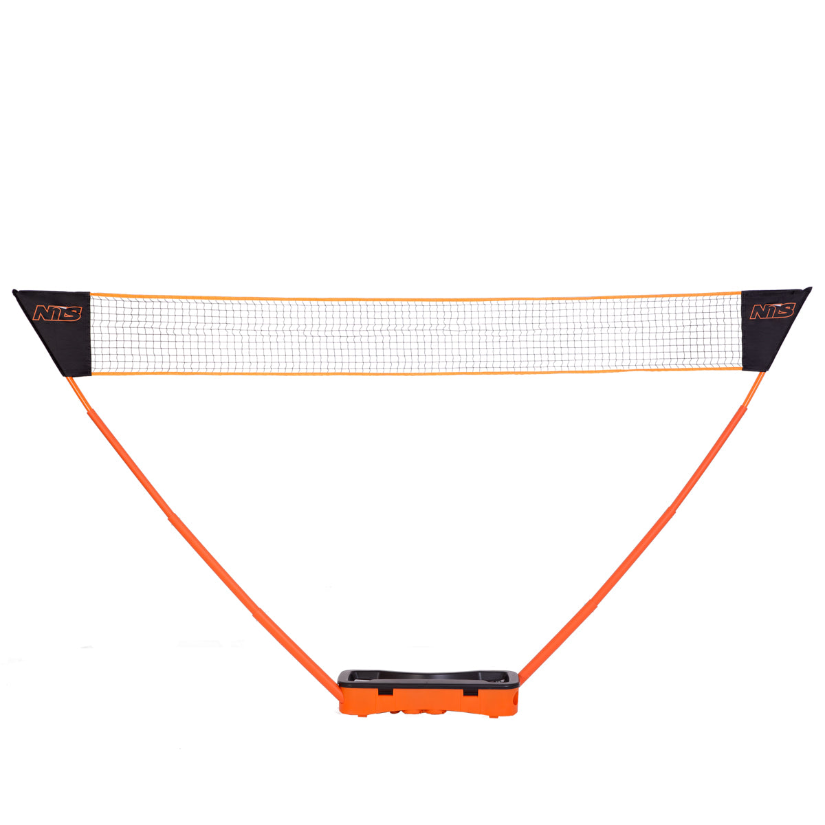 Das Aufstellen des Netzes ist einfach und dabei sind keine Werkzeuge erforderlich. Um das Netz richtig auszubreiten, stecken Sie einfach die Teleskoppfosten in die Öffnungen an der Seite der Box. Sie können dann Ihr Spiel im Freien genießen!